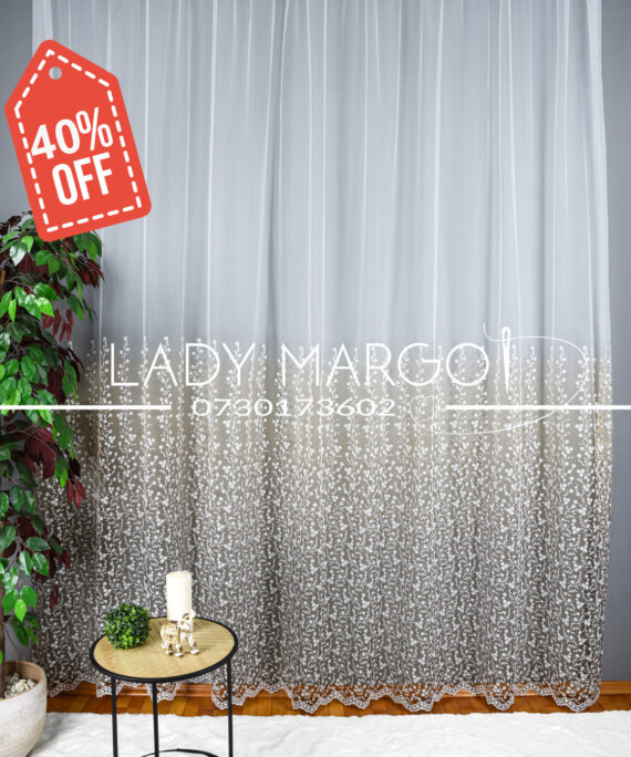 PROMO – perdea tulle model floricele maro/bej 350×270 cm