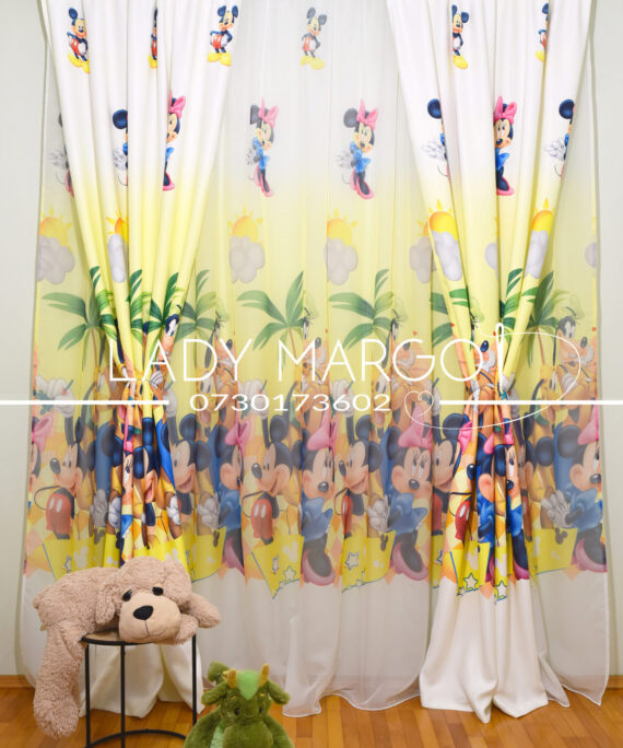 Lady Margot îți oferă seturi perdele și draperii copii, pentru cameră băieți și fete, cu desene animate Disney. Selectează de mai jos setul preferat, alege dimensiunile, iar noi ți-l livrăm acasă, gata făcut (manoperă, rejansa, bară, incluse).